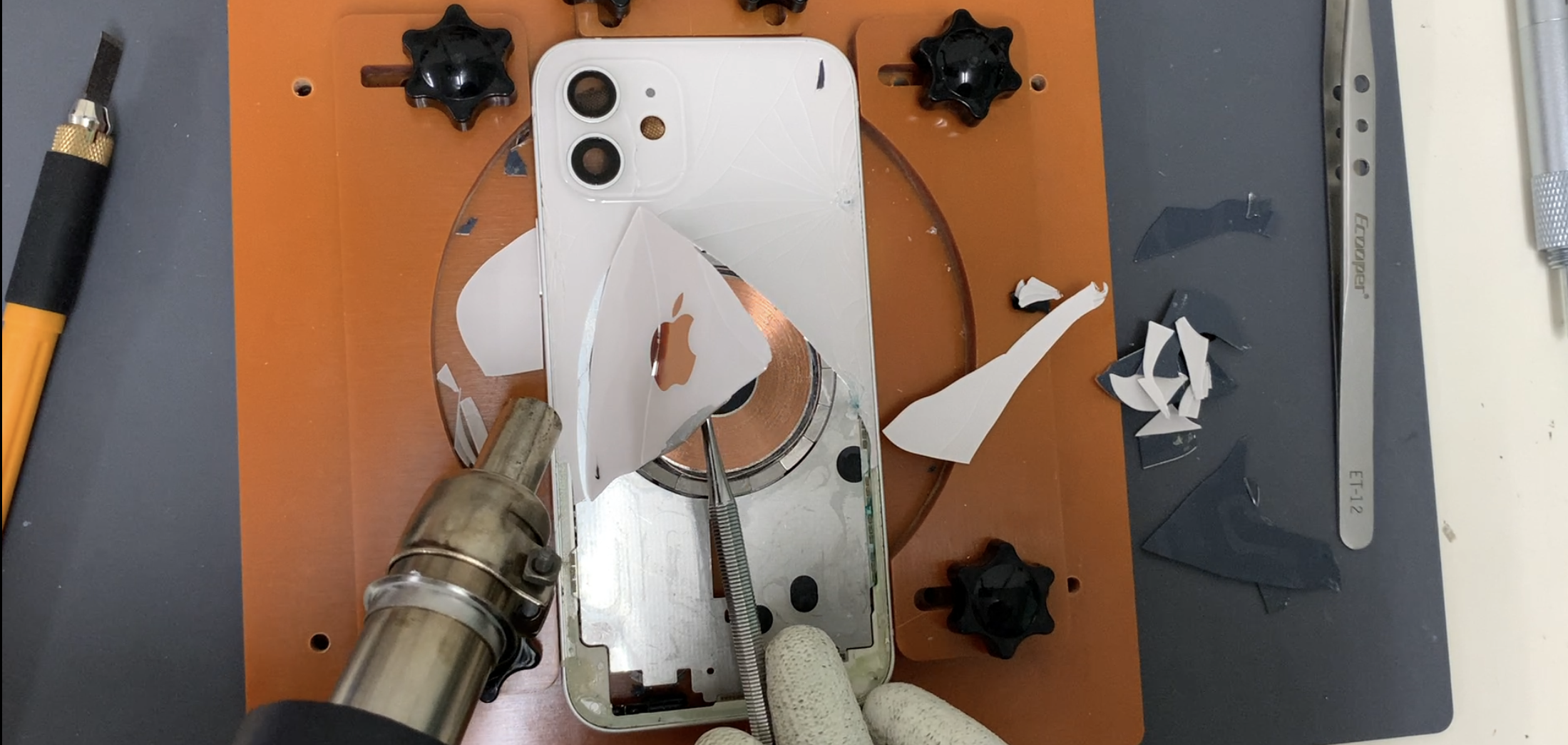 iPhoneの背面ガラスを剥がす。