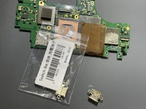 先ほどお話ししたようにSwitchの充電口(USB-C端子)はパーツが基板に直接はんだ付けされています。