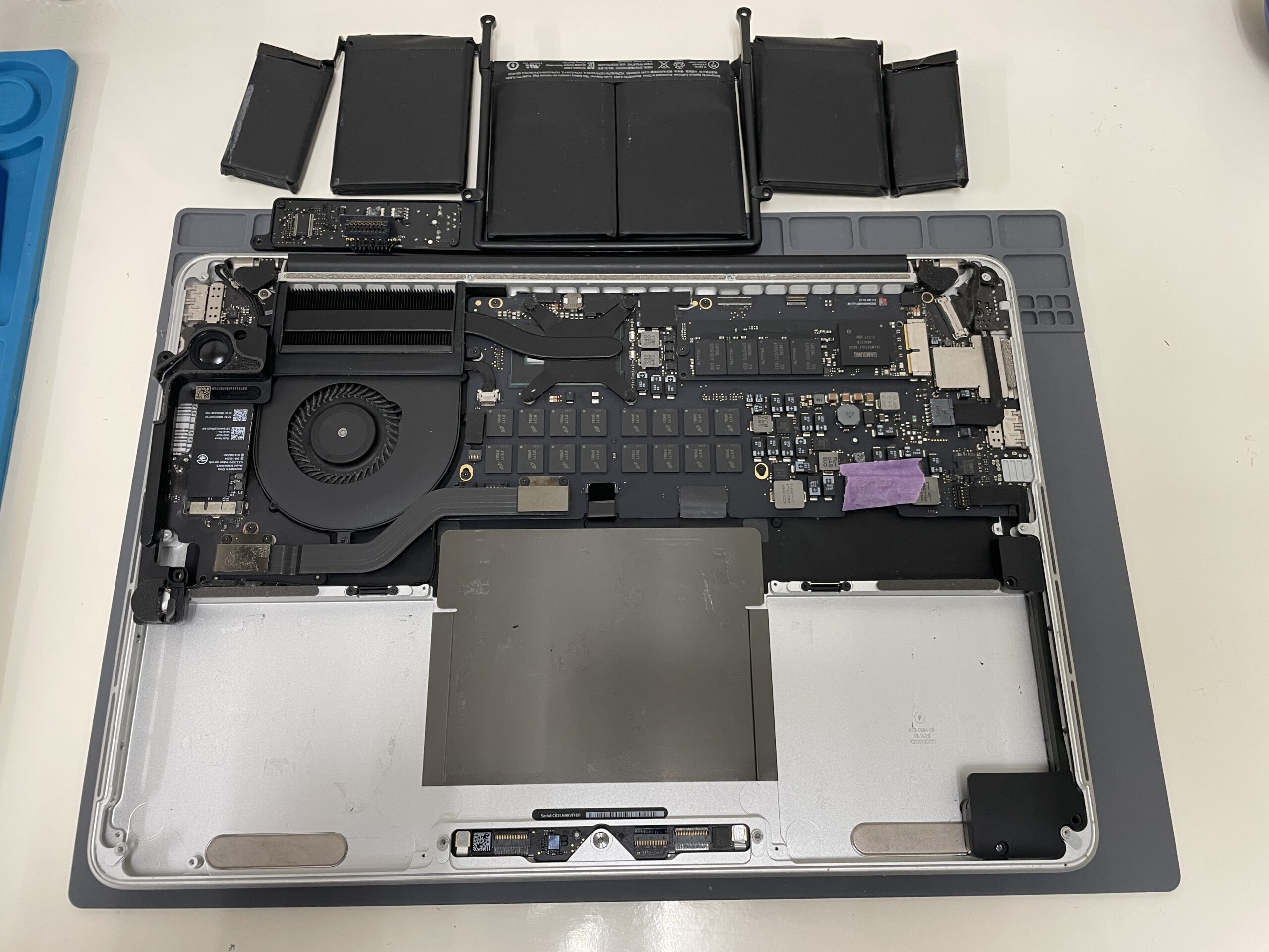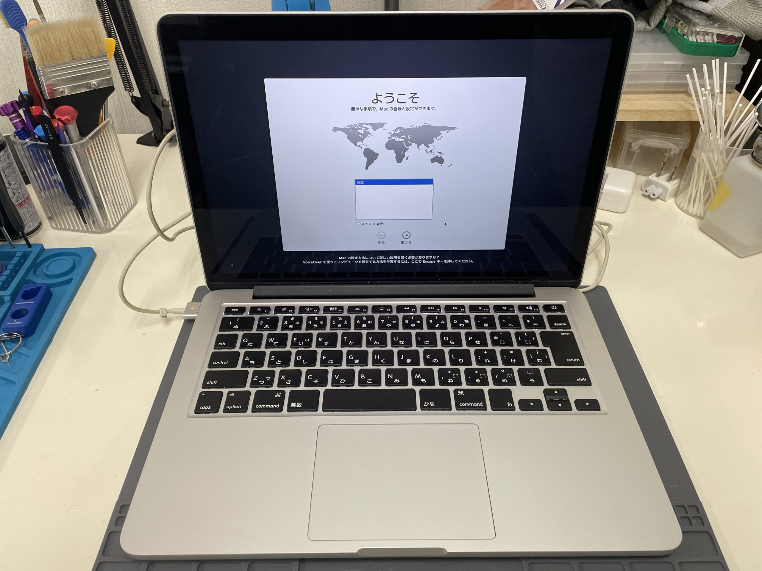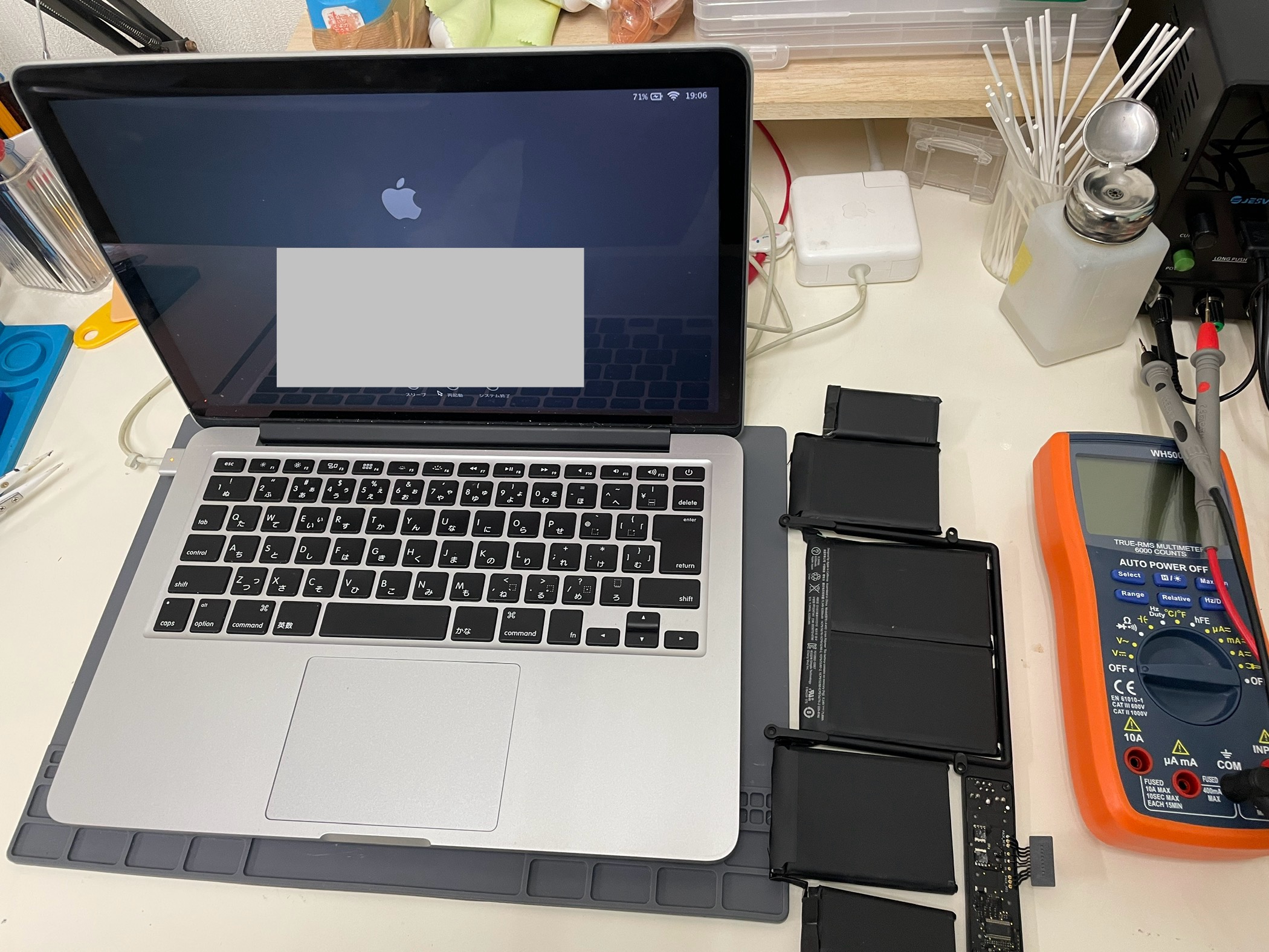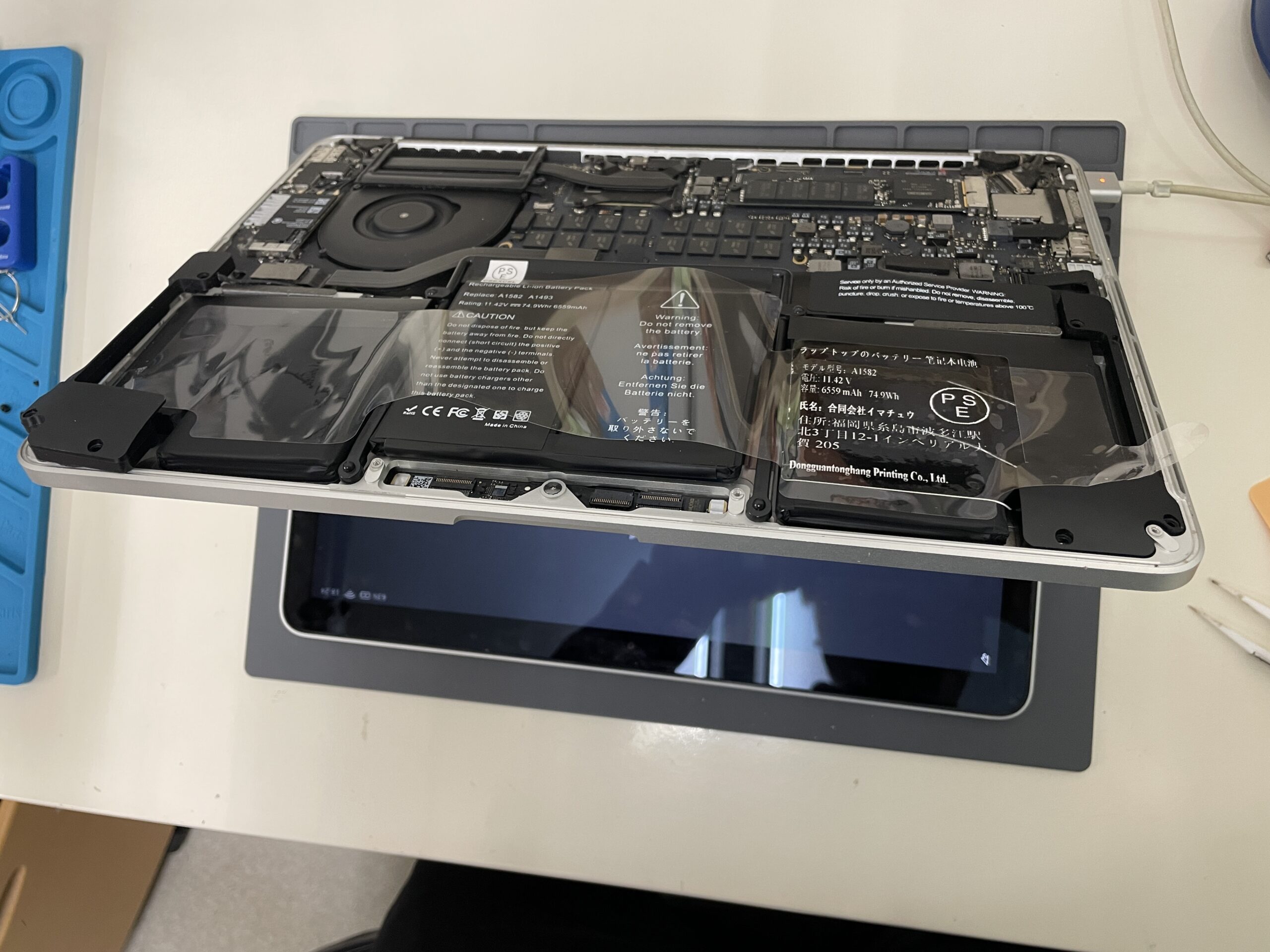 新しいMacbookのバッテリーを取り付けて、動作確認を行います。